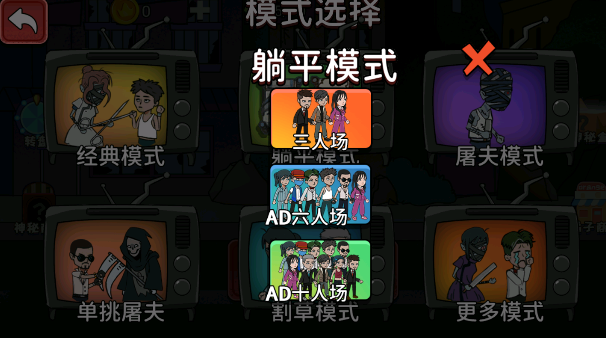 進入模式選擇,經典,躺平,屠夫,單挑, 割草 等眾多模式選擇