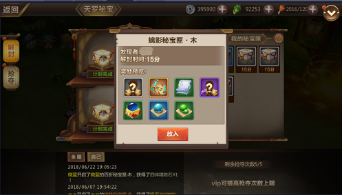 解封不同品質的秘寶匣,需要花費對應不同的時間;