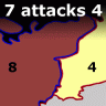 攻擊系統非常簡單。每一支進攻的軍隊有60%的幾率殺死一支防守軍隊。如果所有的防御軍隊都被殺死,領土就會被占領,所有的進攻軍隊就會占領目標領土。例如,如果你使用10個敵人進行攻擊,你將平均殺死6支軍隊。這就是為什么你通常想要用至少兩倍于防御方的軍隊進行攻擊。防守方也有機會殺死進攻的軍隊。每支防守部隊有70%的幾率殺死一支進攻部隊。防御者的擊殺擲骰并不影響領地是否被占領。一般來說,你總是希望在你參與的每一場戰斗中都有壓倒性的人數。然而,很明顯,這并不總是可能的,所以你必須選擇你的戰斗,以最有效地利用你的軍隊。