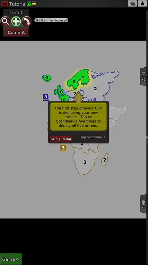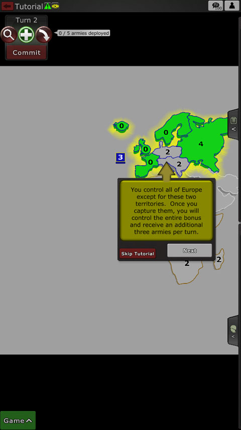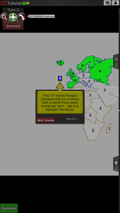 歐洲旁邊的這個“3”表示它是一個獎勵,每回合值3個額外的軍隊。點擊它獲得突出獎金。