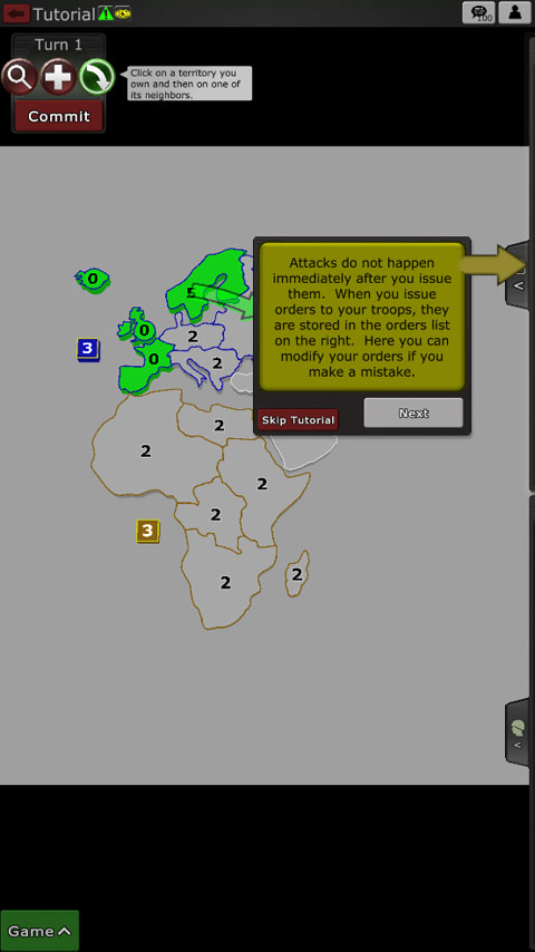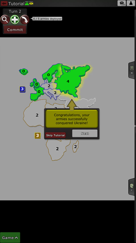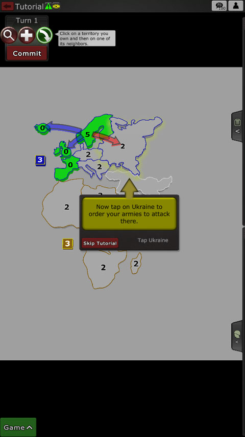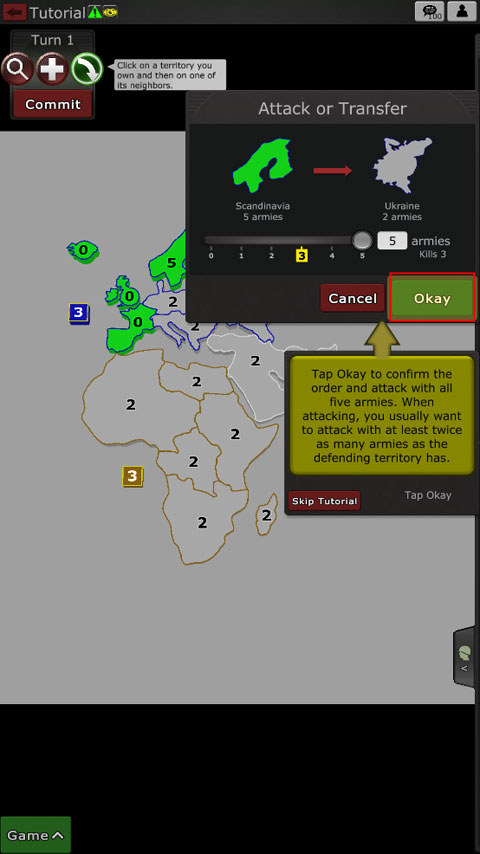 點擊ok以確認命令并使用所有五支軍隊進行攻擊。當進攻時,你通常想用至少兩倍于防守領土的軍隊進攻。