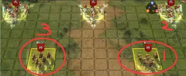 通過圖片可以看出,關鍵點的兩個騎兵中是右邊的先放技能,中招是不可不免的。而左邊的這個技能釋放相對靠后,那么我們過關的方法就是集火他,讓他技能放不出來。少中一輪DEBUFF,多保存一些血量就是3星通關的關鍵。