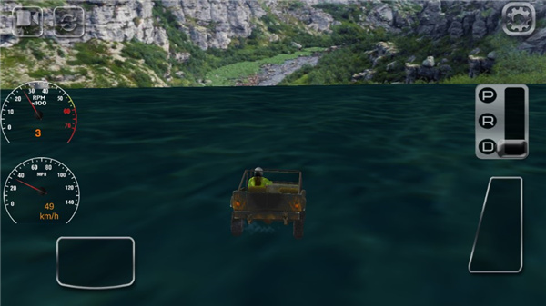 5、4X4越野拉力賽采用重力感應與虛擬按鍵相結合的方式。但是需要注意的是,按住油門時會出現紅色的指示,當紅色越高,汽車的速度也會越快。