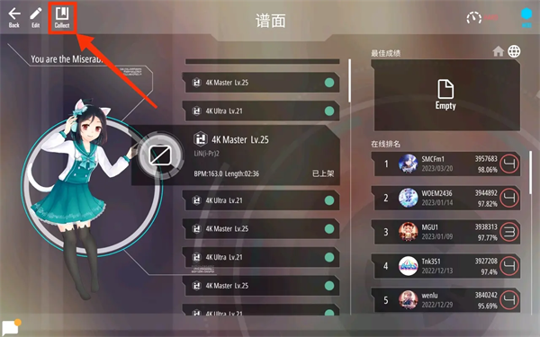 5、選擇適當的模式,讓游戲自動生成音樂圖表。音樂樂譜的編輯功能仍然非常強大,您可以在排行榜上與玩家在線競爭。