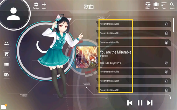 4、具有豐富自定義元素的音樂節奏手機游戲。玩家可以將自己喜歡的本地歌曲導入此手機游戲;