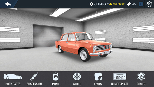 4、點擊車庫,在這里可以給自己的汽車升級配件,來使它的速度更快;