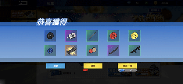 如果有抽到紫色以上的馬達或多一點的平衡桿或導輪更佳,但非必要,因為我們后面都可以透過任務、簽到或金幣商城機率購入。