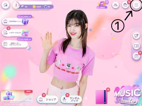 ① 點擊大廳屏幕右上角的3x3點按鈕