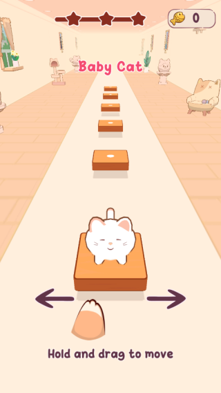 2、長按屏幕并左右滑動控制貓咪掉落在板塊上