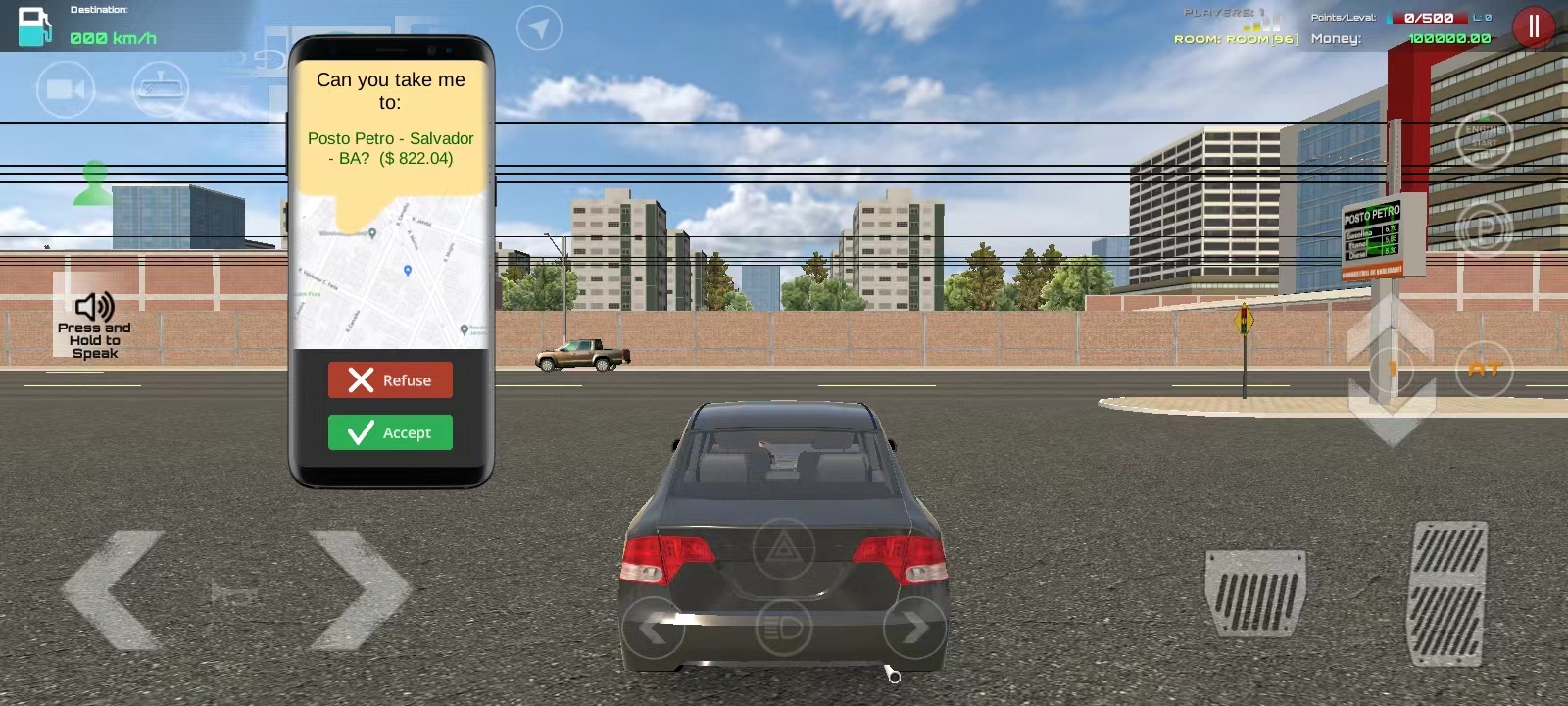 7、進入游戲后,會接到一個任務;點擊【Accept】同意;左邊的兩個按鈕是控制車輛的方向,右下方兩個是剎車和油門;