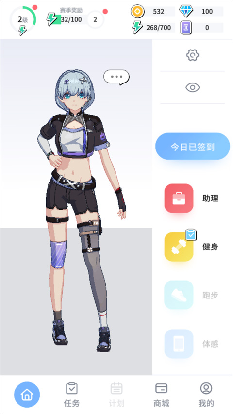經由軟件來進行健身打卡,還能為角色解鎖更多新的時裝。
