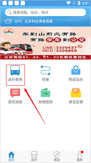 1、進入軟件后,點擊出行查詢;