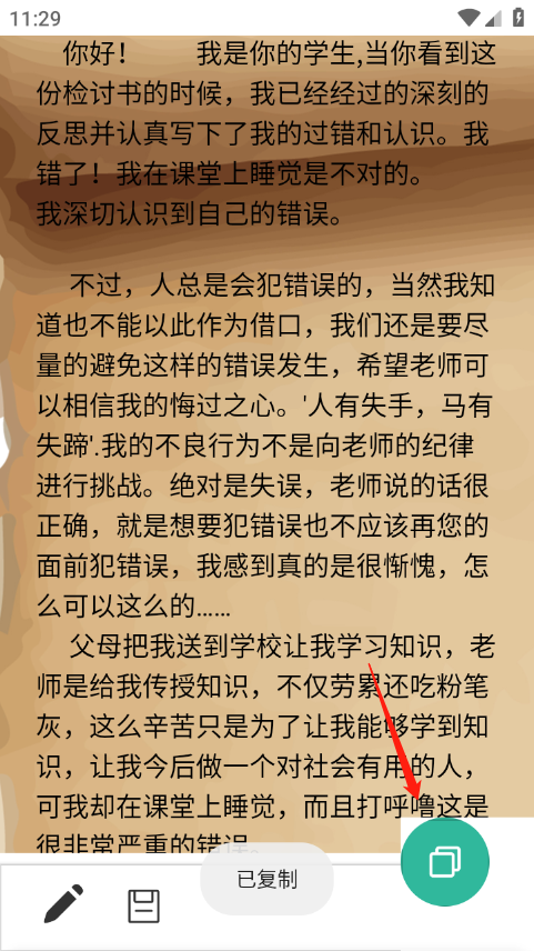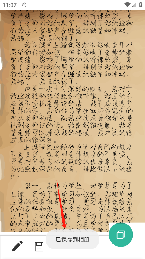 1、在生成檢討書頁面點擊下方的文件圖標將該文本保存到相冊,即可打印出來。