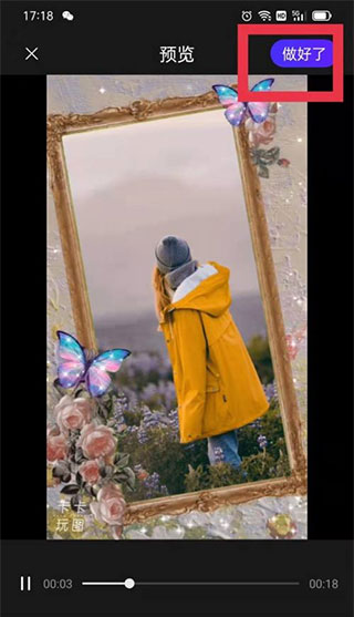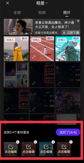 選擇一個自己喜歡的素材選好圖片和視頻點擊選好了。