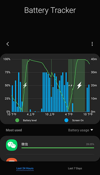 之所以這2個插件存在的原因是三星之前非國行的系統由于國外應用生態相對略好一些,沒有那么多花花腸子,故沒有作強力的后臺限制等功能在系統內,多是依靠安卓本身的管理。這里面的電池跟蹤器算是個高級版的電量使用情況圖表,你可以看到更詳細的各個app電池使用信息。