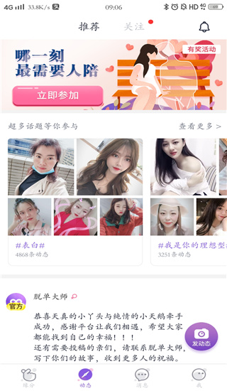 4、廣場(chǎng):展現(xiàn)自己,讓更多人喜歡上你,緣分來(lái)不停