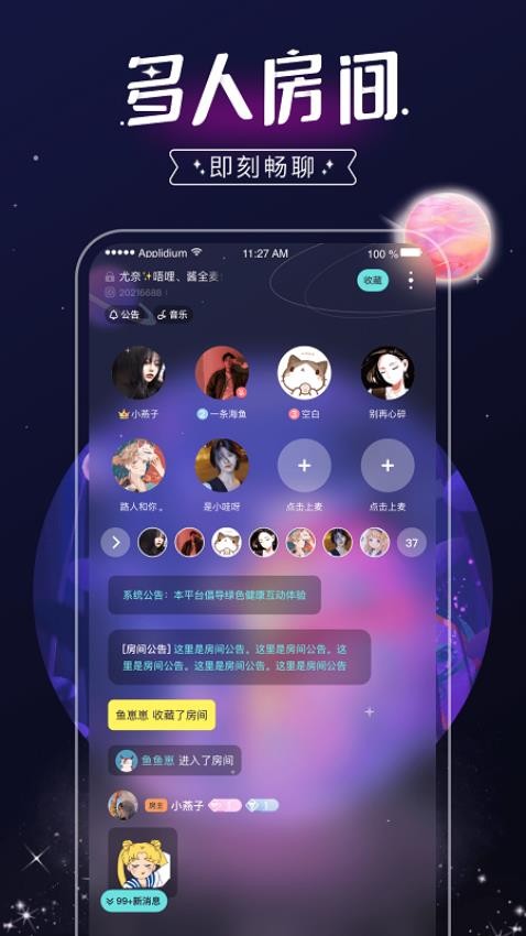 加入有趣的聲音派對運用美妙的聲音結交朋友,與多人聊天互動