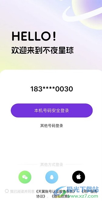 1、在極光下載站下載完成之后進入軟件,可以看到很多的登錄方式,可以使用手機號登錄,也有微信和QQ的登錄方式,不要忘記點擊同意并閱讀;