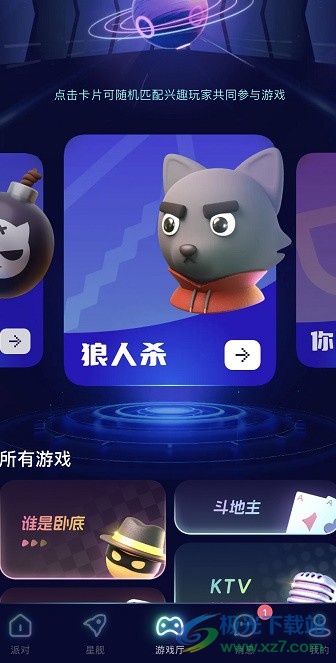 4、游戲大廳中會有很多的趣味小游戲可以體驗,點擊卡片可隨機匹配興趣玩家共同參與游戲;